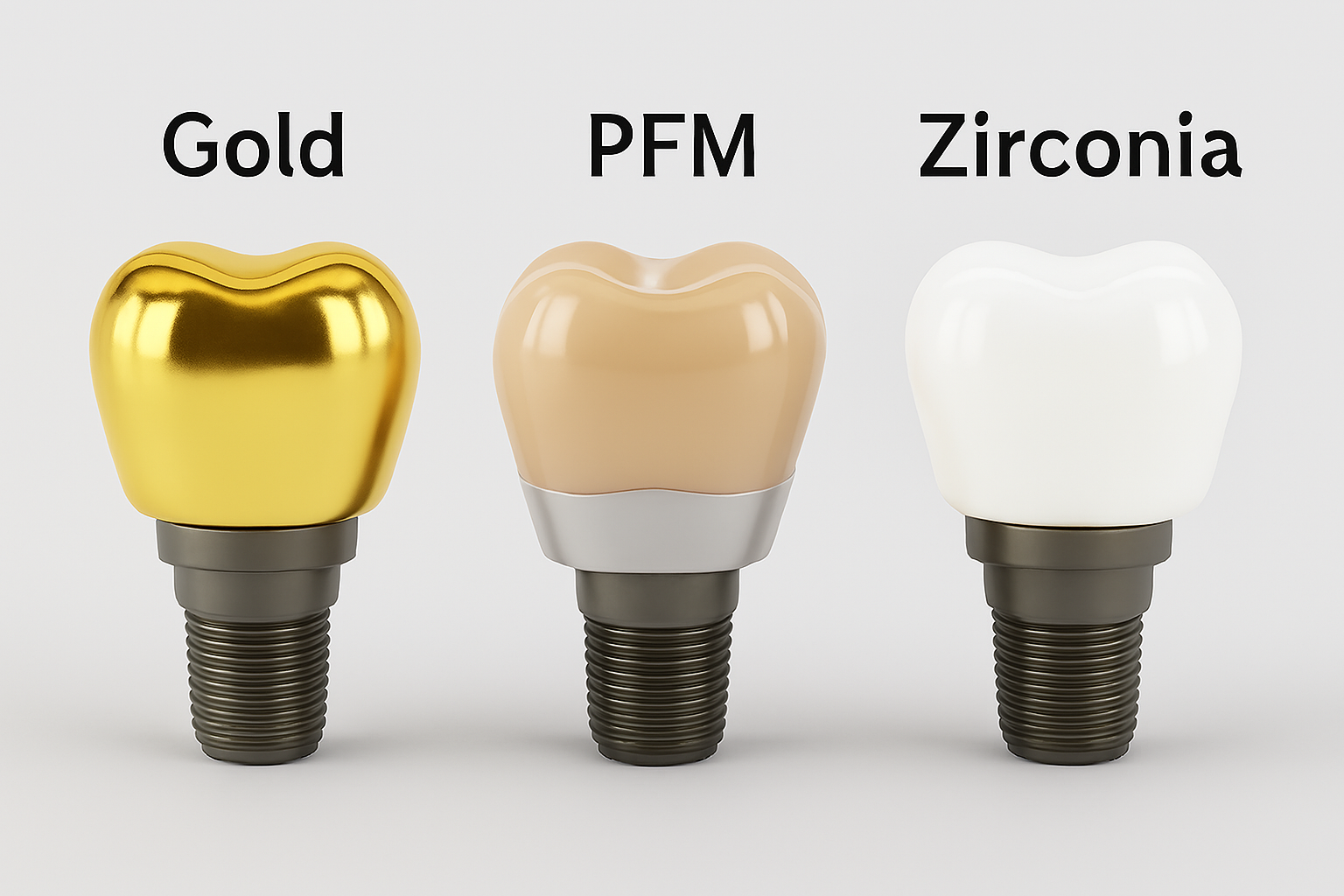 ✅ PFM 크라운: 내구성과 심미성의 균형 → 다용도지만 금속 라인 노출 가능.